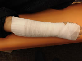骨折・脱臼を元に戻す(整復)応急手当を行います。
